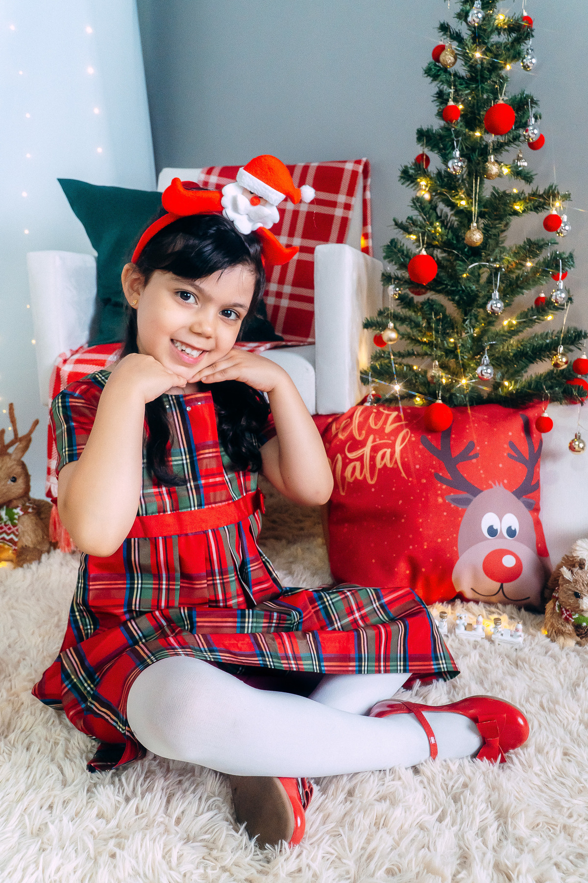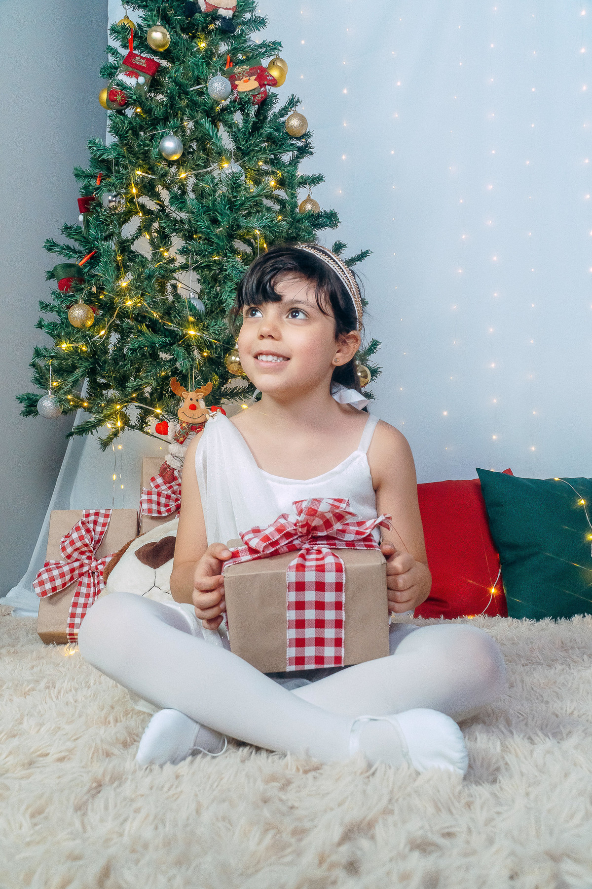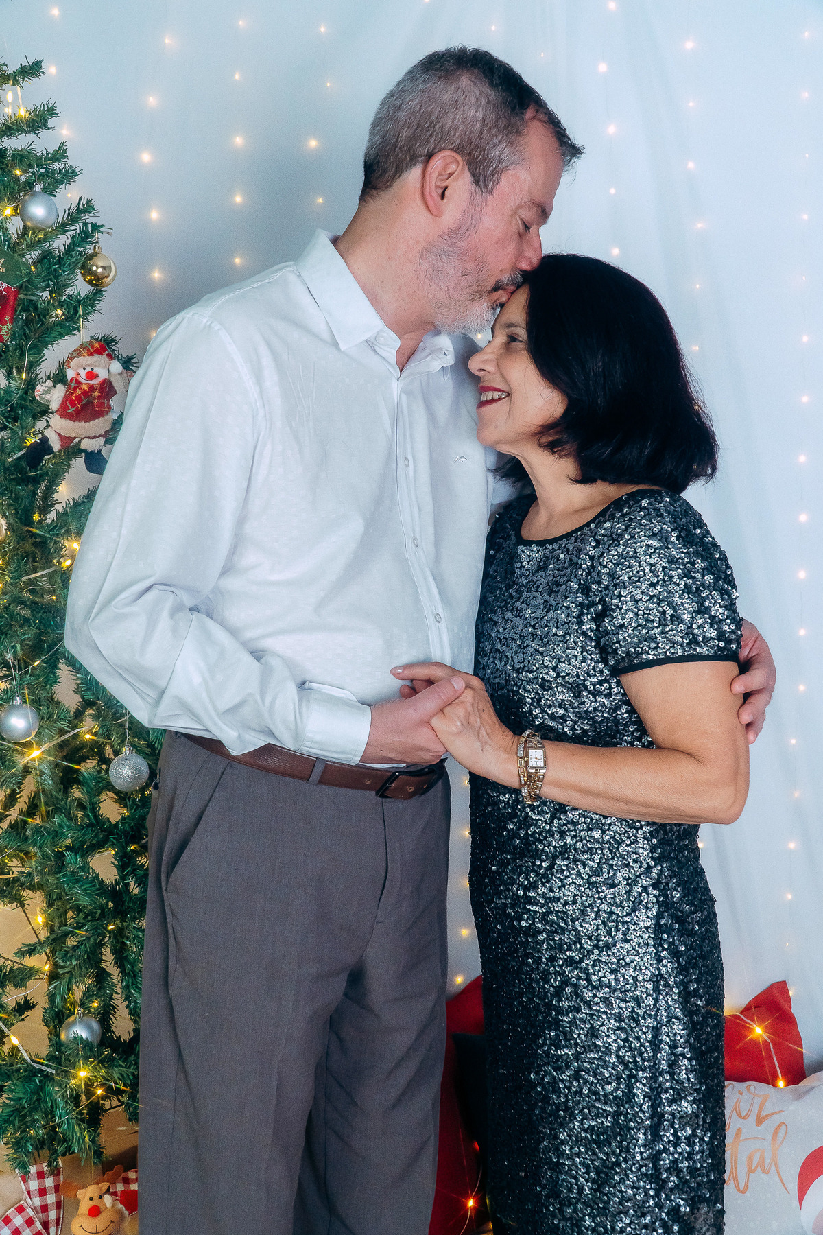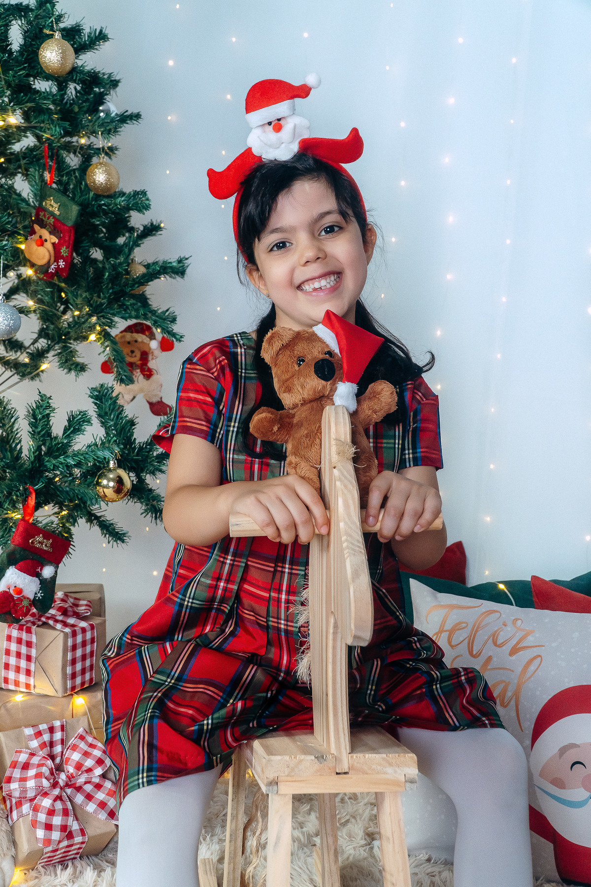 O cenário iluminado, as cores tradicionais e o brilho das luzes criam a atmosfera perfeita para eternizar sentimentos que vão muito além da imagem. Aqui, o que se registra não é apenas um retrato de Natal, mas um momento real de conexão familiar, onde o amor é o protagonista.