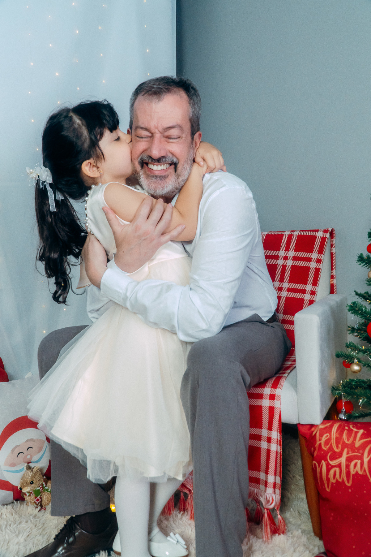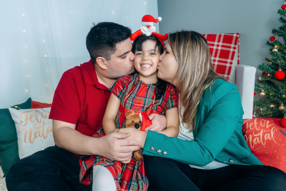 A delicadeza do toque, o brilho no olhar e a risada sincera da criança entre os pais fazem deste clique uma lembrança que vai atravessar o tempo. É o tipo de fotografia que, ao ser revisitada, desperta o mesmo calor no coração — aquele que só o Natal é capaz de trazer.